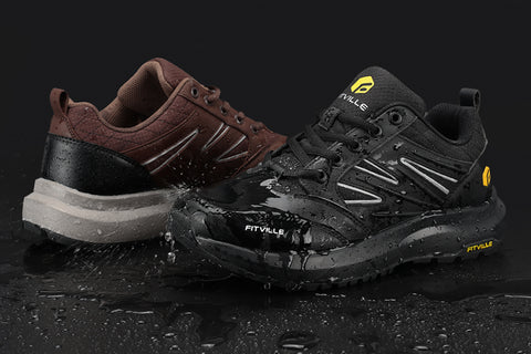 Make sure you are prepared for all types of weather conditions, the changing weather could be tough to handle. Unexpected rain or snow could soak your feet easily, causing blisters and unpleasant odor. FitVille Sturdy Core and Rugged Core are both made of water-resistant PU + Oxford cloth, which is excellent in sliding water off the shoe, keeping your feet nice and dry.