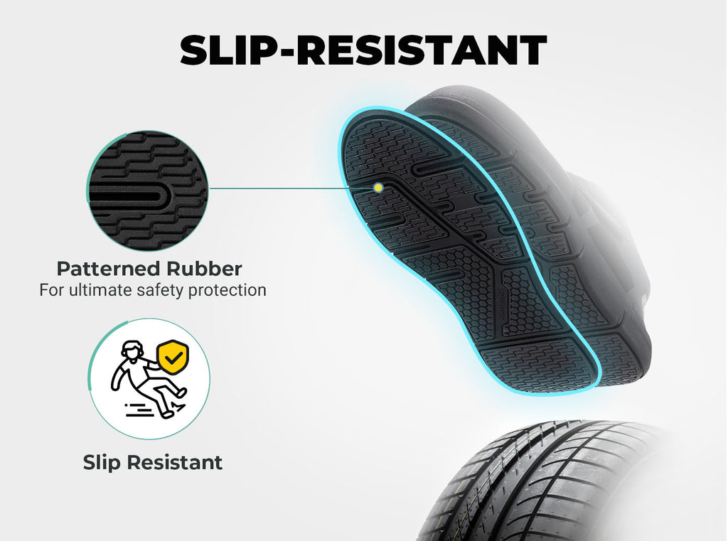 - Slip-Resistant: Thermoplastic rubber soles offer slip resistance and durability for safe walking.