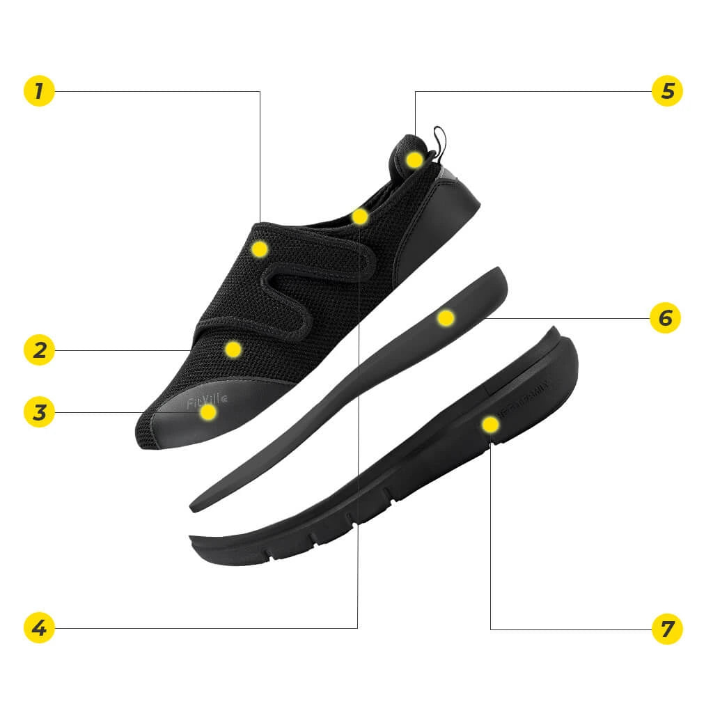 Step into ultimate comfort with FitVille EasyTop® Diabetic Shoes V1 – the perfect solution for swollen, sensitive feet. With an extra-wide toe box and high instep, these shoes cradle your feet with the space and support they deserve.