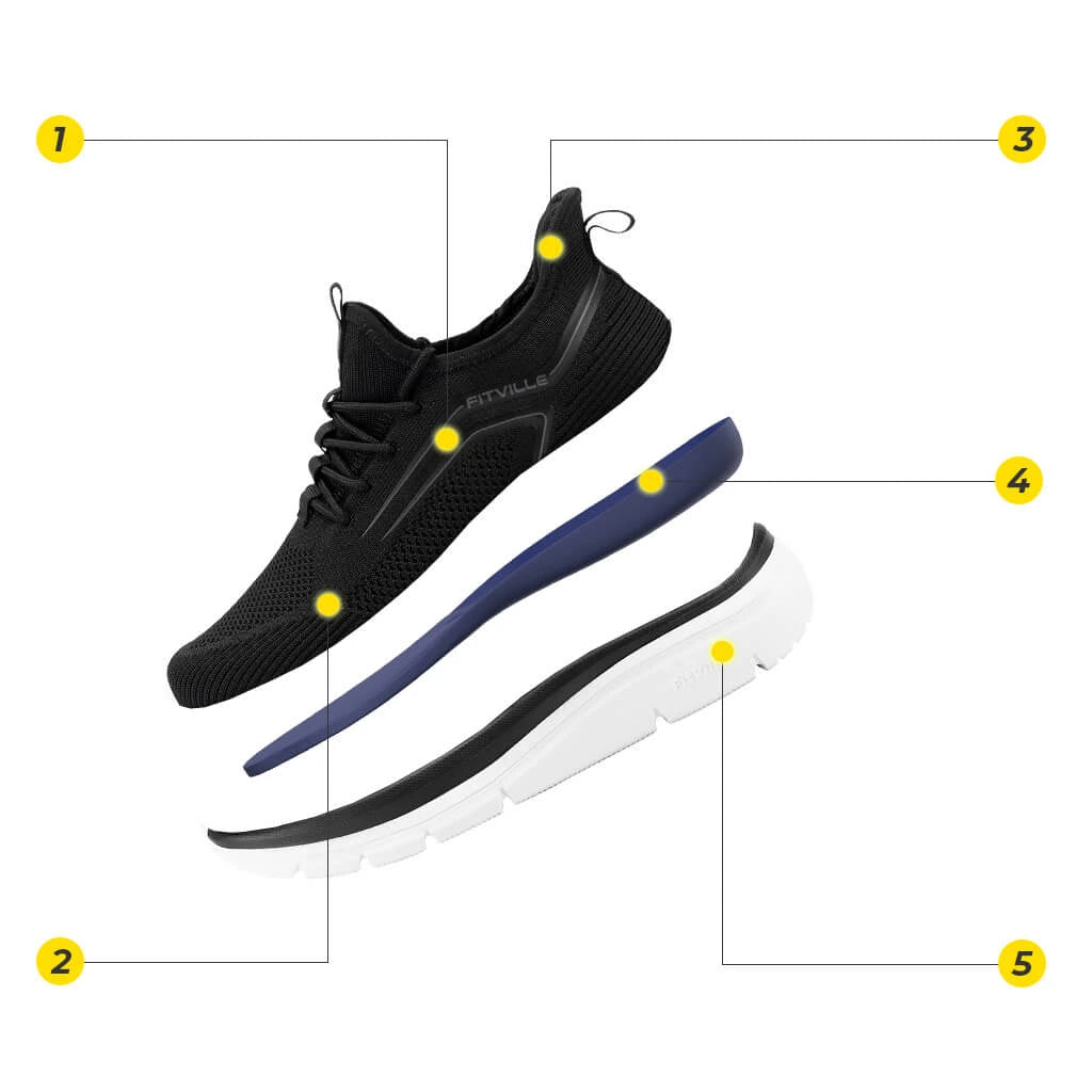 Meet the Cloud Strider V1 gives you a whole new running experience. These shoes from FitVille prioritize your needs from the moment you lace them up, or slip them on. The extra wide collar allows you to slip them on effortlessly while also equipped with laces for a custom fit. Its breathable knit upper keeps your feet cool and dry, while the soft padding interior offers a smooth sensation. It comes in both wide and extra wide toe box that allows your toes to spread naturally, especially for ones with swollen feet. With a 5cm extra thick sole, this shoe offers superior shock absorption and stability, minimizing the impact on your joints and providing a cushy stride on various terrains.